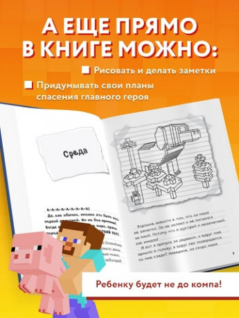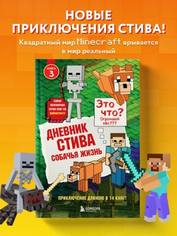 Перед вами — серия книг о приключениях мальчика Стива в мире игры «Майнкрафт». Бестселлер на Западе — теперь и в России! Стив был обычным школьником, но совершенно внезапно попал в «Майнкрафт», о котором слышал только краем уха. На этот раз его ждут огромный пёс (такой ли уж пёс, на самом деле?), захватывающее приключение в пещере, первое сражение с монстрами. А ещё первый настоящий друг! Вас ждут тонны шуток, невероятные приключения, криперы, пауки и другие герои из мира «Майнкрафт»! Поскольку эта книга является дневником, в ней можно творить. Внутри есть пространство для креатива, где читатель может нарисовать героев книги или составить собственный план по защите деревни от зомби. «Майнкрафт» — суперпопулярнаяигра, где можно сражаться с монстрами, исследовать мир и изобретать разные механизмы.