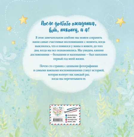 Ваш малыш так быстро растет — и как же хочется запечатлеть каждый его шаг! Благодаря этому альбому — самому первому в жизни ребенка — это становится возможным. Пусть он будет наполнен чудесными днями жизни малыша: от самых первых дней до первых шагов во взрослую жизнь. «Первый альбом малыша» — ваша фантастическая возможность окунуться в беззаботное время в любой момент, ведь теперь стоит только открыть любую страницу — и отправиться в счастливое путешествие к ценным моментам! Этот именно тот самый момент, когда предмет сохранит внутри себя нечто очень дорогое и ценное.