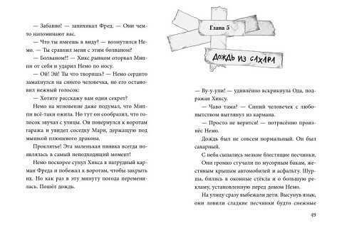 Седьмая книга международной серии-бестселлера — только в России продано более 300 000 экземпляров! Увлекательная история с детективным сюжетом и стильными черно-белыми иллюстрациями. Эта книга создана для тех, кто считает, что читать — это скучно. Оно не оставит никаких сомнений, что с книгами можно классно проводить время: подтверждено сотнями положительных отзывов родителей! «Не открывать! — думал Немо. — Хватит с меня волшебных посылок и выпрыгивающих оттуда игрушек!» Погодные аномалии, которые происходят из-за них в Нудинге, бывают слишком опасны. Однако Ода и Фред решили по-другому. Во-первых, им было любопытно, кто же сидит внутри коробки, а во-вторых, появление новой игрушки могло помешать массовому забегу, в котором Фред о-очень не хотел участвовать. Но стоило им открыть посылку, как оттуда выбежала целая армия крошечных человечков! Они такие смешные и… быстрые! Поймать их невозможно! Кажется, в Нудинге назревает новая КАТАСТРОФА!