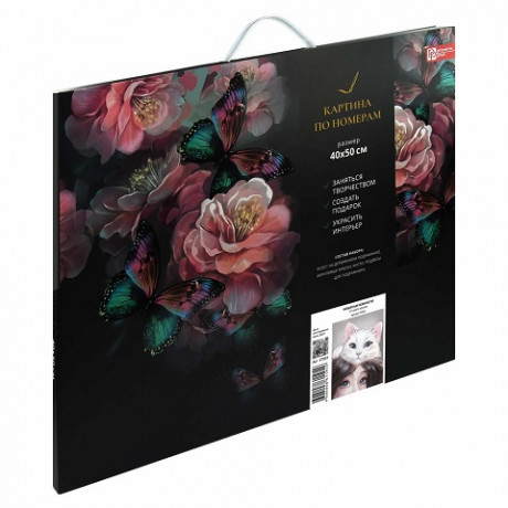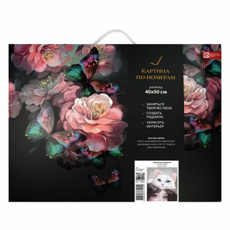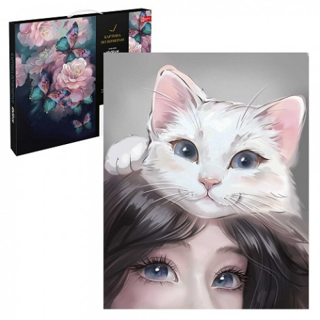 Набор для творчества Картина по номерам арт. 67953 / 16 КОШАЧЬИ НЕЖНОСТИ, размер: 40х50 см, (23 цвета (-ов), холст на деревянном подрамнике с напечатанной схемой рисунка, контрольный лист с нанесенной схемой, краски акриловые на водной основе (упакованы в вакуумную упаковку), кисти художественные с ворсом из нейлона – 4 шт., подвесы для подрамника, пакет на zip-молнии, лак в комплекте, картонная коробка с ручкой)