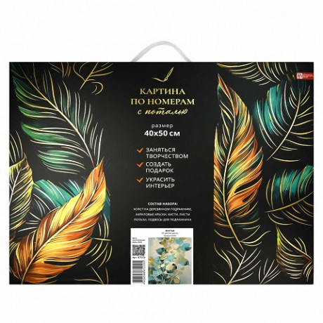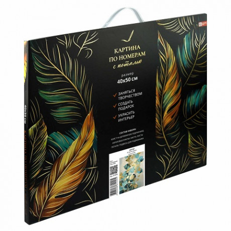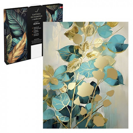 Набор для творчества Картина по номерам с поталью арт. 67979 / 16 ЛИСТЬЯ, размер: 40х50 см, (15 цвета (-ов), холст на деревянном подрамнике с напечатанной схемой рисунка, краски акриловые на водной основе (упакованы в вакуумную упаковку), кисти художественные с ворсом из нейлона – 4 шт., поталь, клей для потали, лак, пакет на zip-молнии, подвесы для подрамника, контрольный лист с нанесенной схемой в комплекте, поталь: золотая, картонная коробка с ручкой)