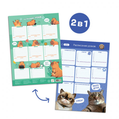 Многоразовое стильное расписание уроков и звонков 2 в 1 точно порадует школьников, а возможность стирать, вносить исправления и добавлять информацию делают его очень выгодной покупкой. Трендовые темы и дизайн с триколором и флагами украсят рабочее место и создадут отличное настроение! Матовая бумага плотностью 115 г/мм2 с глянцевой ламинацией, формат А3.