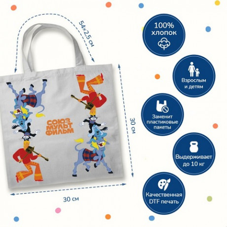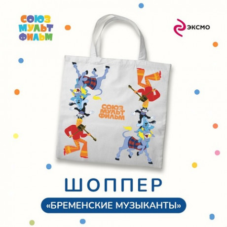 Яркий шоппер по мотивам любимого советского мультфильма детства «Бременские музыканты». Хороший подарок маме, папе, бабушке, дедушке и внукам. Благодаря универсальному размеру 30х30 см шоппер подойдет как взрослым, так и детям. Длина ручек 54х2,5 см. Шоппер сделан из 100% белого хлопка, ткань приятна на ощупь и отличается износостойкостью. Рисунок нанесен высококачественной DTF печатью, благодаря чему долго останется таким же красочным, как в первый день после покупки. Один шоппер заменит сотню пластиковых пакетов и при этом может выдержать до 10 кг. С шоппером удобно ходить за покупками в магазин, на прогулку, на пляж, носить в нем сменку для школы, ноутбук, тетради, блокноты и книги. Например, «Десять негритят» Агаты Кристи, «Вино из одуванчиков» Рэя Брэдбери, «Преступление и наказание» Федора Достоевского, «Путешествие в Элевсин» Виктора Пелевина, «Мастер и Маргарита» Михаила Булгакова. А еще шоппер станет отличной упаковкой для подарка на Новый год, день рождения, 8 марта и 23 февраля. Рекомендуется п
