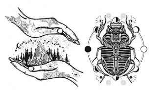 Татуировка-наклейка "Черно-белые рисунки" микс, 12х19см, WS008-3/1/25