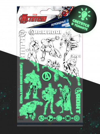 Наклейки-тату переводные 110*200 "Мстители – 1" светящиеся, АКС-1393/1/10