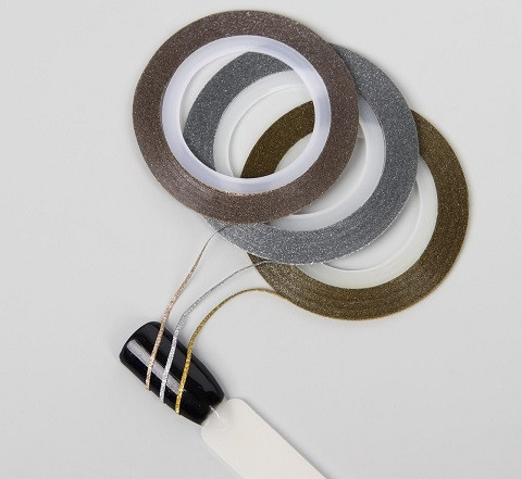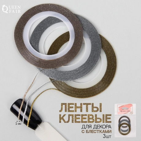 Лента клеевая для ногтей с блёст набор 3шт 1мм*18м серебр/зол/бронз пакет QF 3949642/1/2700