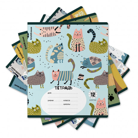 Тетрадь А5+ 12л клетка скоба мелов. картон, Erich Krause MIX-PACK 63238/1/10