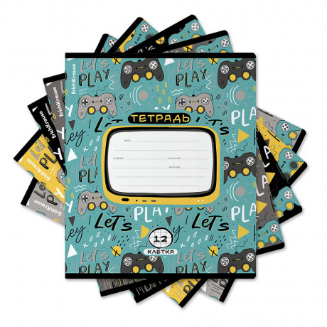 Тетрадь А5+ 12л клетка скоба мелов. картон, Erich Krause Gamepad 58386/1/10/280