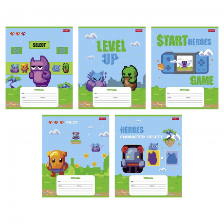 Тетрадь А5 12л клетка скоба мелов. картон, Hatber Пиксель_Level Up 12Т5В1_089545/1/140