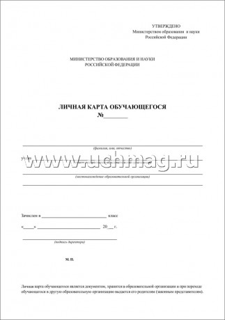 Личная карточка обучающегося А4 160г/м2, КЖ-103/1/267427/1/50/1000