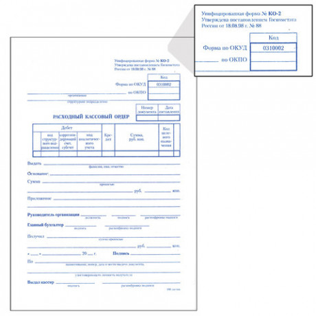 Бланк "Расходный кассовый ордер" OfficeSpace А5 (форма КО-2), газетка, 100 экз, 161206/1/20