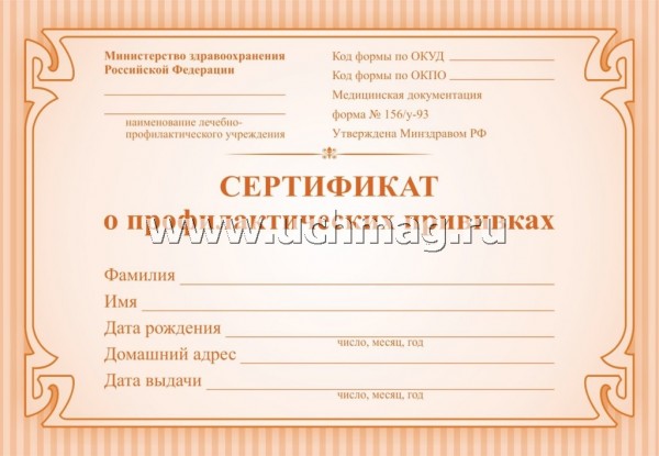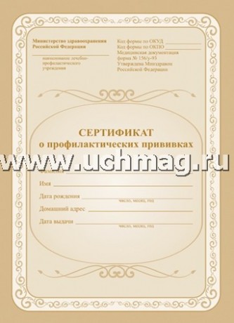 Сертификат о профилактических прививках КЖ-401/1/20/800