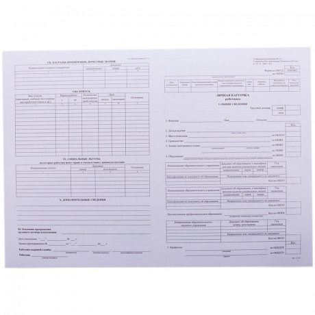 Бланк "Личная карточка работника" форма Т-2 КЖ-113/1/250