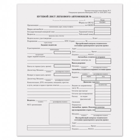 Бланк "Путевой лист легкового автомобиля" А5 (форма №3 от 28.09.2022) 100 экз. 252459/1/20