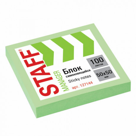 Бумага с клеевым краем 50х50мм. 100л. 1бл. зеленый STAFF Manager 127144/1/12