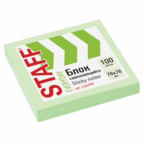 Бумага с клеевым краем 76х76 мм 100л. 1бл. зеленый STAFF Manager 126498/1/12
