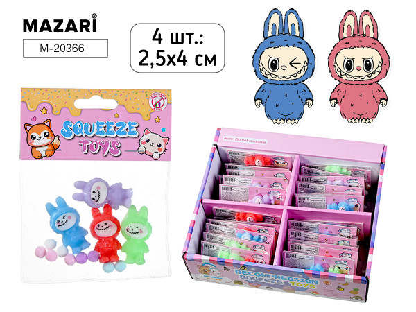 Игрушка-антистресс "ЛАБУБУ" 4 шт., 2.5*4 см. M-20366/1/24