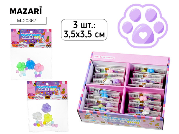 Игрушка-антистресс MAZARI ЛАПКИ, 5*6 см, 3 цвета ассорти M-20336/1/12 M-20336/1/12