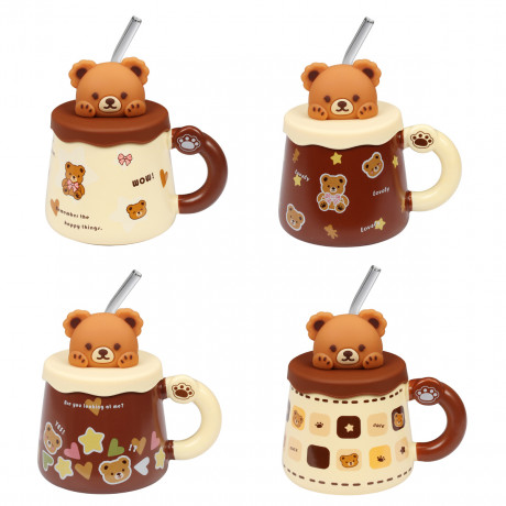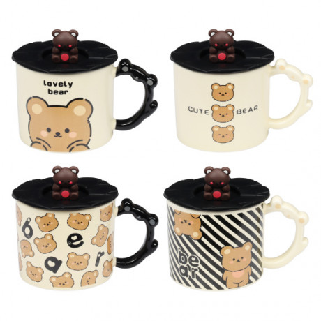 Кружка керамическая 360мл крышка "Bear" КОКОС ассорти 4 вида 252580/1