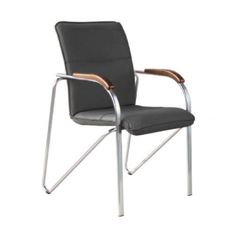 Кресло посетителя Samba chrome V14/1.031 к/з чёрный/ тёмный орех