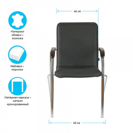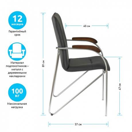 Кресло посетителя Samba, каркас хром, экокожа, черный, орех BOX1/344611/1