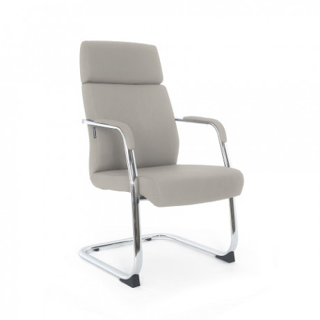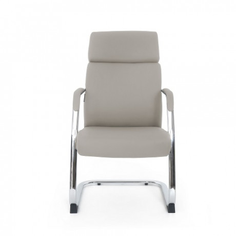 Кресло для посетителей LF0-PYB15-3 экокожа серо-бежевый TN-04 полозья хром