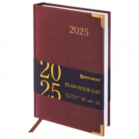 Ежедневник датированный 2025 Senator 168л. А5 Brauberg коричневый 115814/1/2/20#