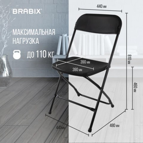 Стул BRABIX "Golf CF-002", складной, черный каркас, пластик черный, 531563/1/12