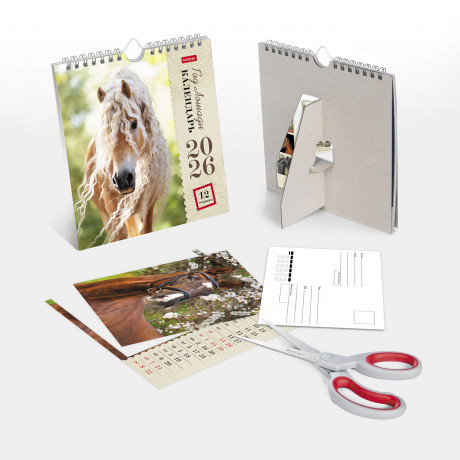 Календарь домик 160х170мм. на гребне с ригелем 2026 Hatber Год Лошади 12КД5гр_34549/1/52