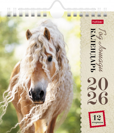 Календарь домик 160х170мм. на гребне с ригелем 2026 Hatber Год Лошади 12КД5гр_34549/1/52