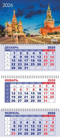 Календарь квартальный 292х650 мм. спираль 3бл. 2026 LAMARK Москва - Красная площадь 92092/1/23