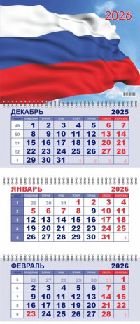 Календарь квартальный 292х650 мм. спираль 3бл. 2026 LAMARK Россия. Флаг 93105/1/23
