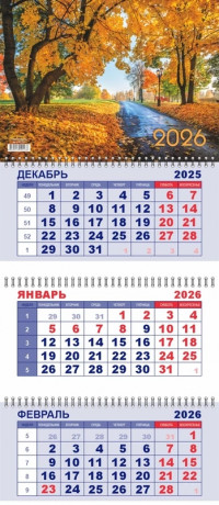 Календарь квартальный 292х650 мм. спираль 3бл. 2026 LAMARK Осенний лес 92238/1/23