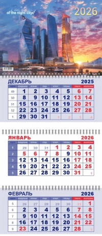 Календарь квартальный 305х675 гребень 3бл. 2026 Полином "Рассветная Москва" 3120-19/1/20