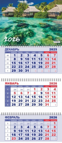 Календарь квартальный 292х650 мм. спираль 3бл. 2026 LAMARK Остров в океане 93075/1/23