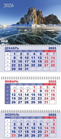 Календарь квартальный 292х650 мм. спираль 3бл. 2026 LAMARK Байкал зимой 91903/1/23
