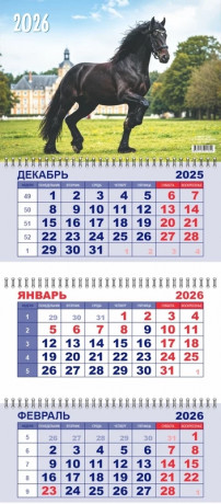 Календарь квартальный 292х650 мм. спираль 3бл. 2026 LAMARK Символ года-Год Лошади. Вороной91842/1/23