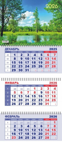 Календарь квартальный 292х650 мм. спираль 3бл. 2026 LAMARK Голубое озеро 91934/1/23