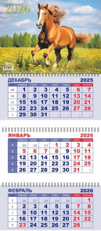 Календарь квартальный 292х650 мм. спираль 3бл. 2026 LAMARK Символ года-Год Лошади. На зака91828/1/23