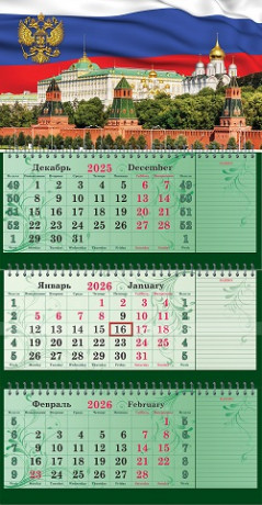 Календарь квартальный 440х835мм. гребень 3бл. 2026 Полином "СУПЕРПРЕМИУМ, Госсимволика" 2409-10/1/20