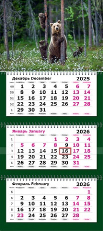 Календарь квартальный 330х705мм. гребень 3бл. 2026 Полином "ПРЕМИУМ" "Медвежья семейка" 2402-29/1/20
