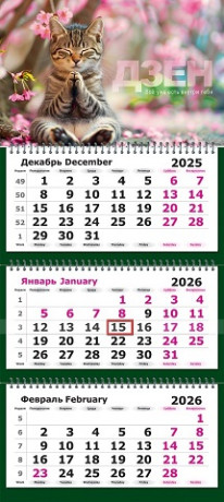Календарь квартальный 305х675 гребень 3бл. 2026 Полином "Мяу-дзен" 13с14-307/1/20