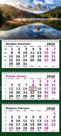 Календарь квартальный 305х675 гребень 3бл. 2026 Полином "Пейзаж. Туман на горном озере" 13с14-298/1/