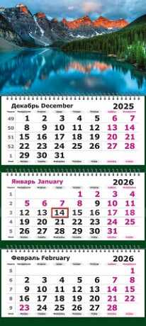 Календарь квартальный мини 190х465мм. гребень 3бл. 2026 Полином "Голубое отражение" 2401-15/1/20