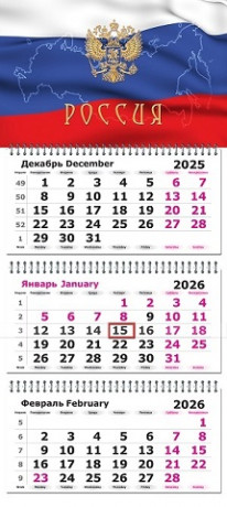 Календарь квартальный 305х675 гребень 3бл. 2026 Полином "Госсимволика 2" 13с14-162/1578137/1/20