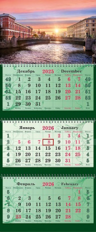 Календарь квартальный 340х810мм. гребень 3бл.2026 Полином СУПЕРПРЕМИУМ, Питер.Реки и каналы 2406-38