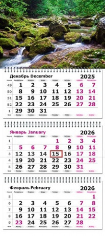Календарь квартальный 305х675 гребень 3бл. 2026 Полином "Каменистый ручей" 3120-26/1/20