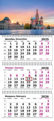Календарь квартальный 305х675 гребень 3бл. 2026 Полином "Рассветная Москва" 3120-19/1/20