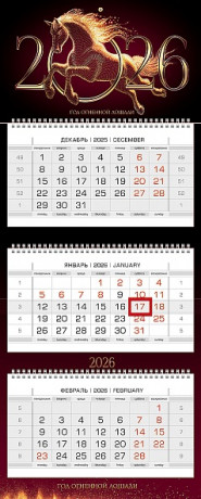 Календарь квартальный 292х650 мм. спираль 3бл. 2026 LAMARK Символ года-Год Лошади. Скакова91798/1/23