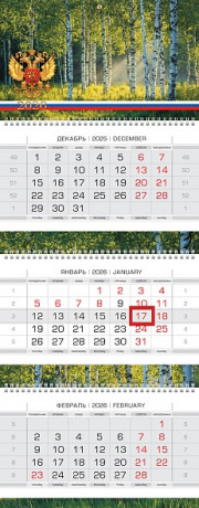 Календарь квартальный 292х650 мм. спираль 3бл. 2026 LAMARK Байкал зимой 91903/1/23
